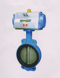 气动蝶阀是双(单)作用气动活塞式执行器与蝶阀组成。连接形式分为对夹式和法兰式两种,其阀座采用橡胶、氟橡胶和不锈钢堆焊,从而很大程度的提高了其适用范围。具有结构简、体积小、重量轻等优点。气动活塞式执行器采用低摩擦材料,缸体内外表面经硬质阳极